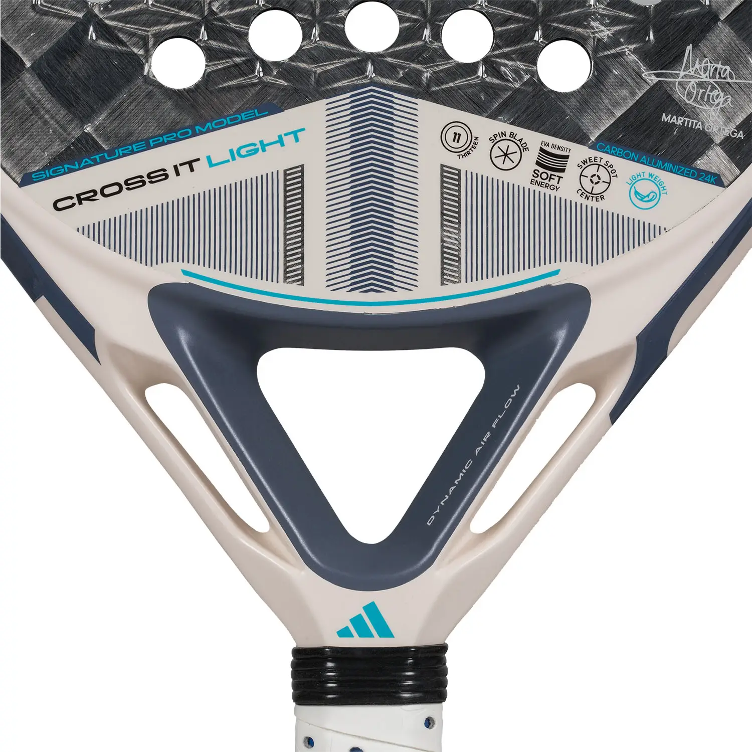La Adidas Cross It Light 3.4 2025, disponible en Muchopadelshop, es una pala diseñada para jugadores que buscan una opción ligera y maniobrable sin renunciar al control y la precisión. Su estructura de carbono 18K le otorga una gran resistencia y durabilidad, mientras que su núcleo de EVA Soft Performance permite un golpeo más cómodo y con mayor absorción de vibraciones, ideal para prevenir lesiones y mejorar la sensación de juego.