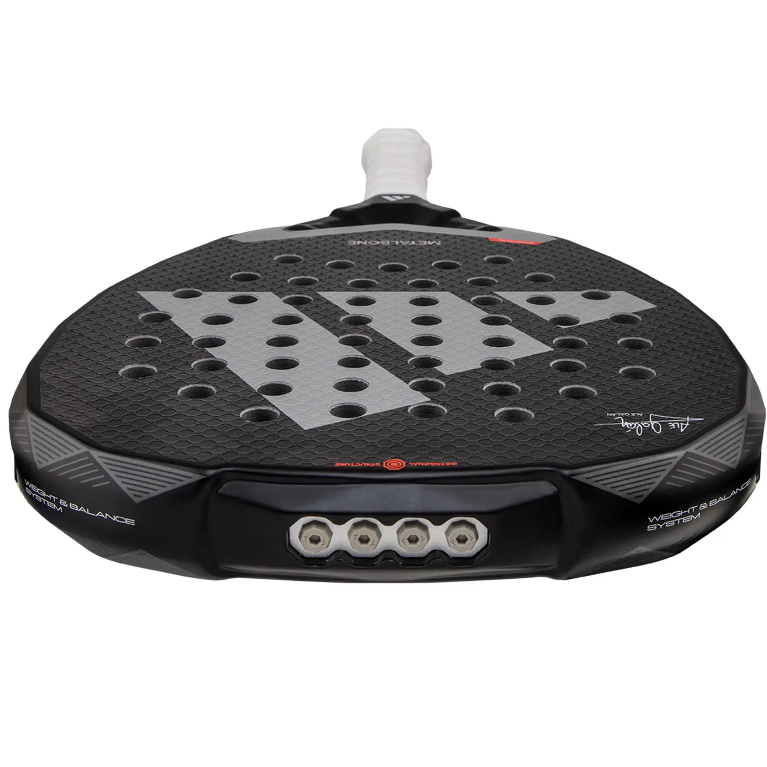 La Adidas Metalbone 3.4 2025 destaca por su estética agresiva y moderna, con un diseño que refleja la potencia y el control que ofrece en la pista. Su combinación de colores vibrantes y detalles metálicos la convierte en una de las palas más llamativas del circuito profesional.