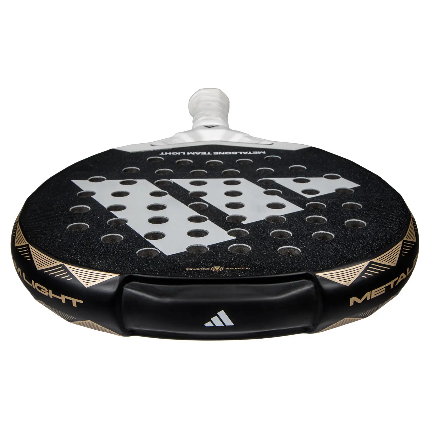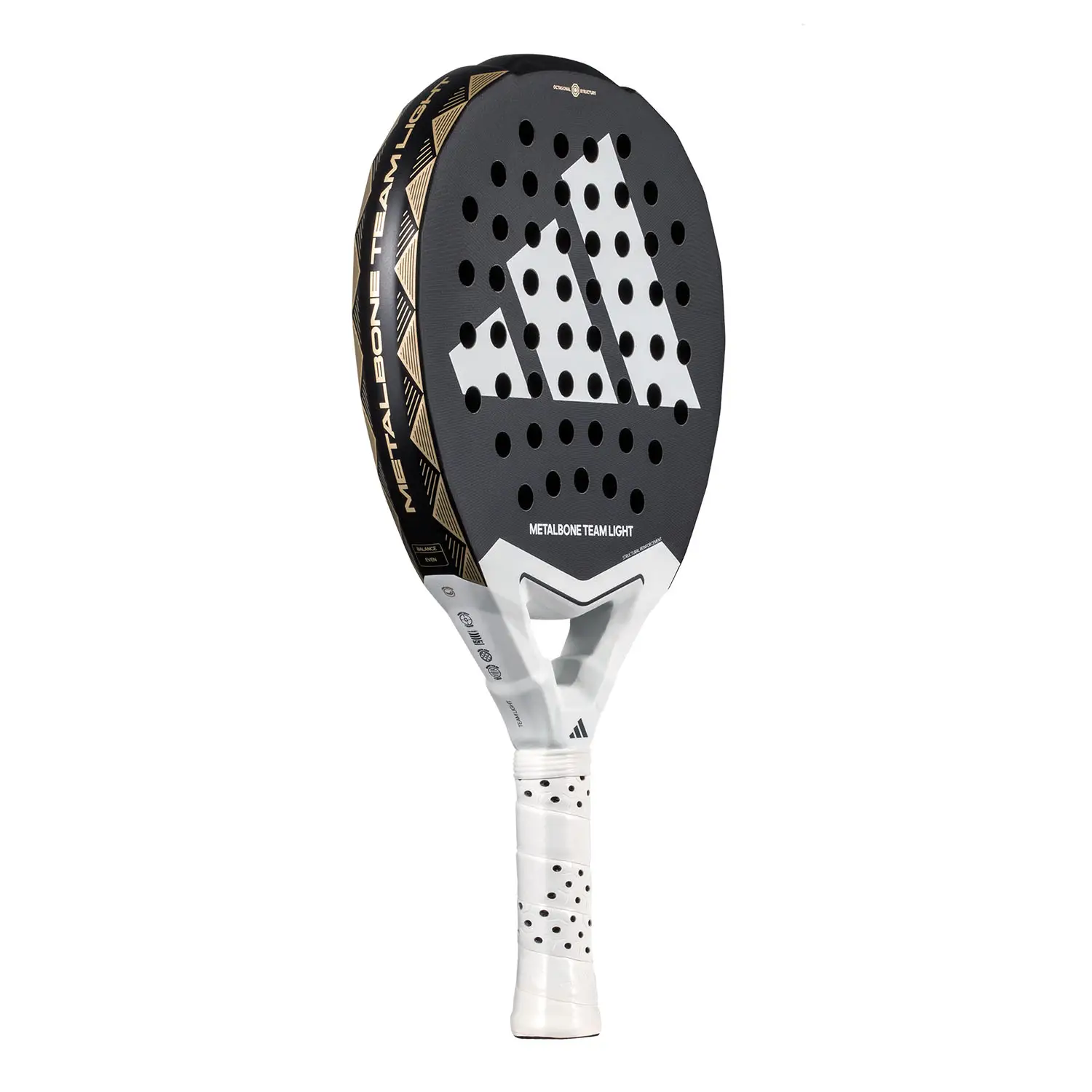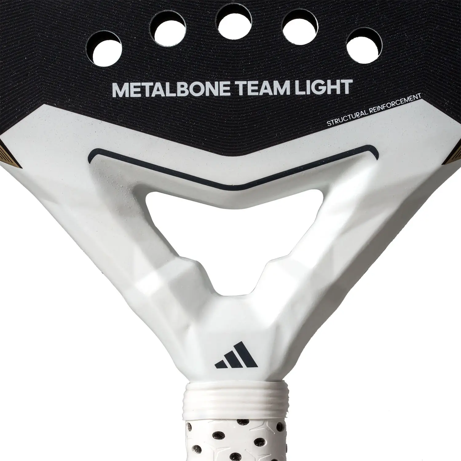 El diseño de la Adidas Metalbone Team Light 3.4 2025 mantiene la estética moderna y agresiva de la línea Metalbone, con detalles visuales que reflejan su potencia y versatilidad. Su ligereza permite una excelente movilidad, facilitando voleas rápidas y bandejas precisas, mientras que su balance medio-alto sigue ofreciendo una buena potencia en remates y golpes ofensivos.