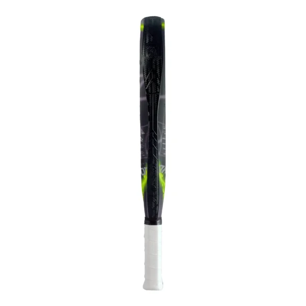 Su formato híbrido y su balance medio-alto permiten una gran versatilidad, ofreciendo una pegada contundente sin perder precisión en los golpes más técnicos. El marco y las caras están reforzados con fibra de carbono de alta calidad, proporcionando una mayor durabilidad y resistencia ante impactos.