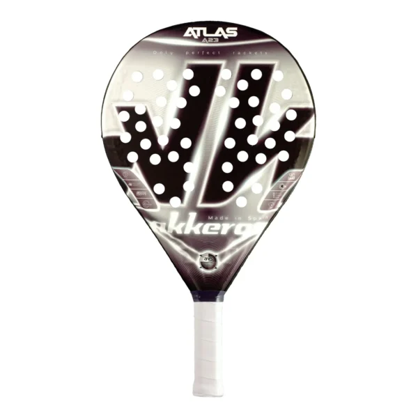 Gracias a su balance medio-alto, la Atlas 23 permite un juego agresivo sin perder manejabilidad, convirtiéndola en una opción ideal tanto para jugadores que buscan dominar desde el fondo de la pista como para aquellos que disfrutan del juego ofensivo en la red. Además, su sistema de perforación circular optimiza la aerodinámica y mejora la estabilidad en cada impacto.