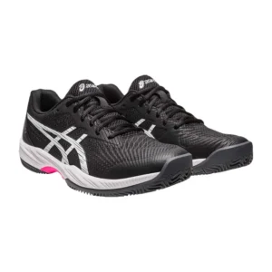 Descubre las zapatillas ASICS GEL-GAME 9 CLAY:OC en negro y rosa, diseñadas para el máximo rendimiento en la pista de pádel. ¡Hazte con ellas en Muchopadelshop hoy mismo!