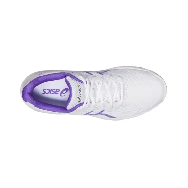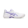 Su diseño en blanco y morado no solo las hace destacar en la pista, sino que también refleja elegancia y estilo. Además, la construcción ligera y transpirable garantiza una ventilación adecuada, manteniendo tus pies frescos y secos incluso en los momentos más intensos del partido.