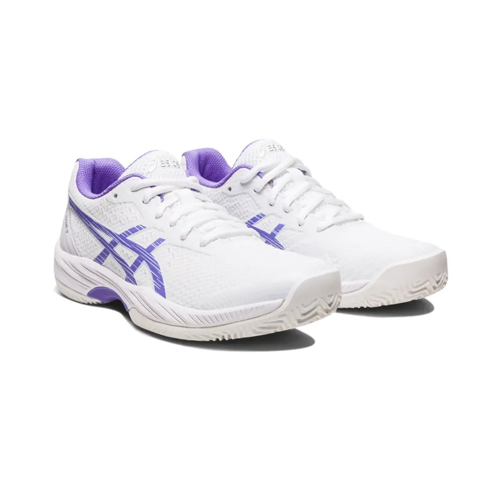 Descubre las zapatillas ASICS GEL-GAME 9 Clay: OC blanco morado mujer, diseñadas para dominar la pista de pádel. ¡Consíguelas en Muchopadelshop!