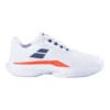 Acelera tu juego con las zapatillas Babolat Jet Tere 2 AC M en blanco, modelo 30S24649 1089. Disponibles en Muchopadelshop, diseñadas para ofrecer velocidad y confort en la pista de pádel.