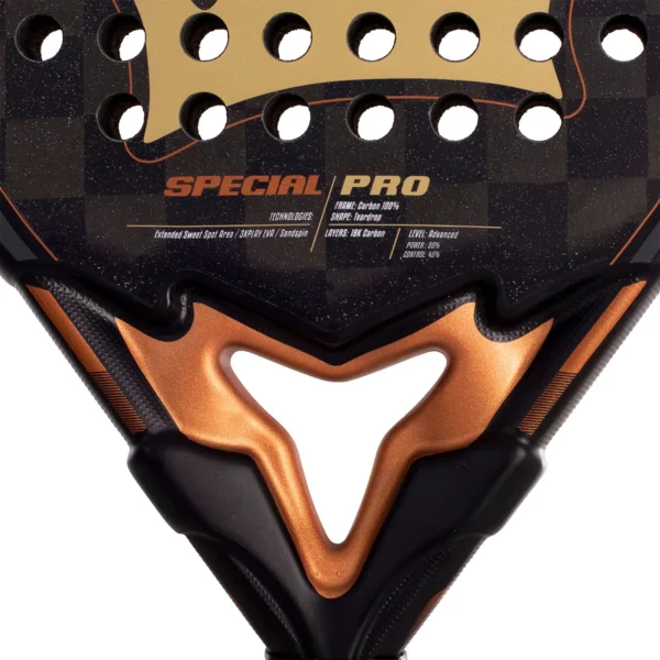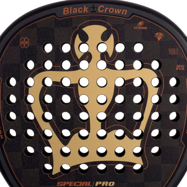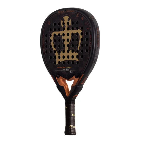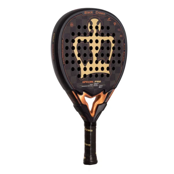 La Black Crown Special Pro es una pala de alta gama diseñada para jugadores exigentes y de nivel avanzado o profesional que buscan una combinación óptima de potencia y control. Gracias a su formato híbrido, proporciona una gran superficie de golpeo, permitiendo una mejor manejabilidad sin perder pegada.