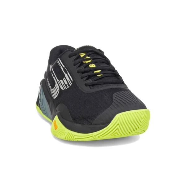 El diseño en negro sobrio y elegante, con acabados modernos y de alta gama, aporta un estilo atemporal que transmite profesionalidad y solidez, convirtiéndola en un calzado tan funcional como estéticamente refinado. Su ajuste ergonómico garantiza una sujeción firme, brindando confianza y seguridad en cada desplazamiento dentro de la pista.