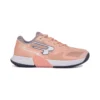 El acabado en albaricoque femenino y moderno, junto con detalles estilizados, ofrece un estilo elegante y distintivo, combinando estética y funcionalidad para jugadoras que buscan un calzado confiable y visualmente atractivo. El ajuste ergonómico proporciona una sujeción firme y estable, permitiendo a la jugadora moverse con confianza y precisión en cada punto.