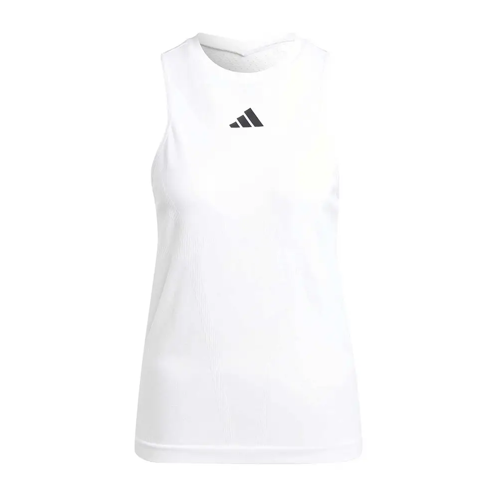 La Camiseta de Tirantes Adidas LDN Y-Tank Mujer blanca ofrece comodidad, transpirabilidad y libertad de movimiento, perfecta para pádel, tenis y entrenamientos intensivos.