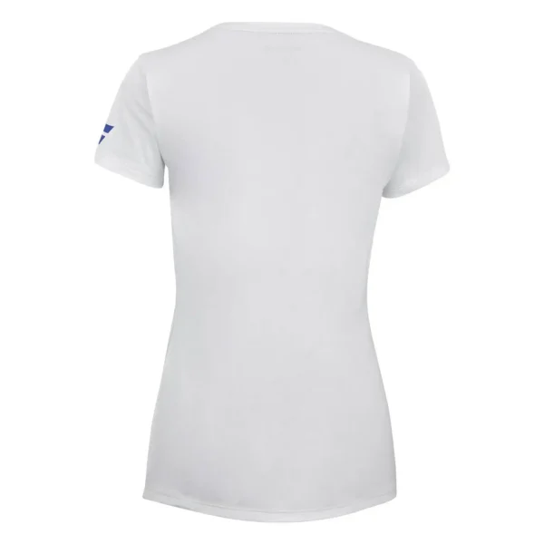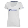 El ajuste cómodo y el diseño de cuello redondo proporcionan una sensación de ligereza y libertad de movimiento, permitiendo que las jugadoras se concentren únicamente en su rendimiento sin sentirse restringidas. Además, el logo de Babolat en el pecho añade un toque distintivo, reflejando el carácter deportivo y de calidad de la marca.