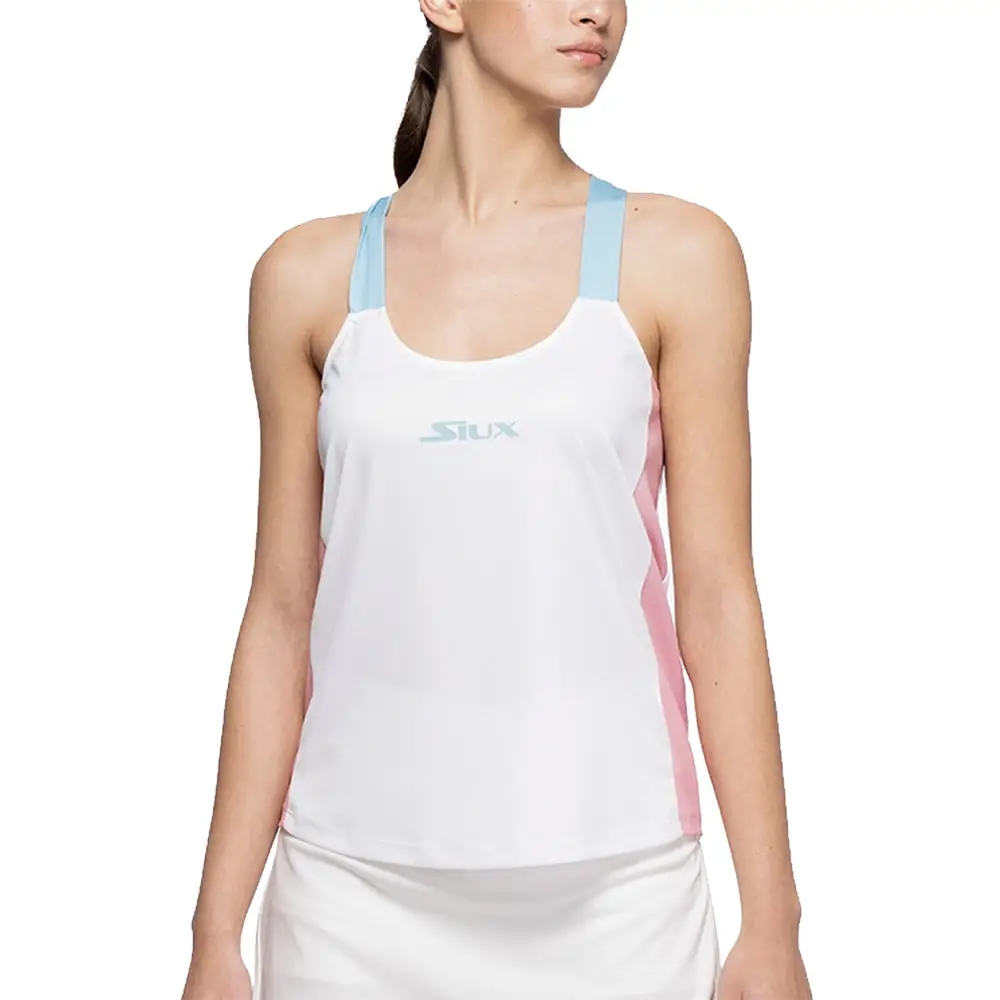 La camiseta de tirantes Siux Pao Azul Turquesa ofrece comodidad, frescura y libertad de movimiento, perfecta para jugadoras que buscan rendimiento y estilo moderno en la pista de pádel.