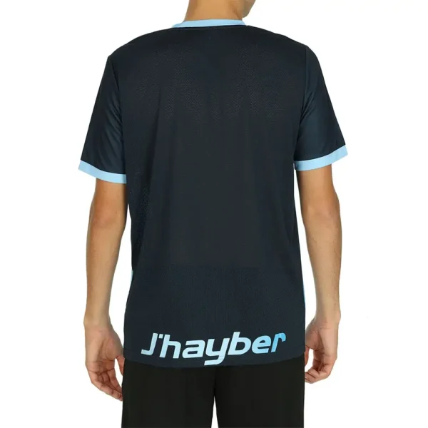 Camiseta Jhayber DA3244P-200 en azul, diseñada con materiales de alta calidad para ofrecer máxima transpirabilidad y confort. Ideal para jugadores de pádel que buscan una prenda ligera, flexible y duradera, con un diseño moderno que optimiza el rendimiento en la pista.