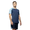 El color azul marino de la camiseta le aporta un toque de elegancia y versatilidad, lo que la convierte en una prenda ideal tanto para entrenamientos como para competiciones. Su corte ajustado se adapta perfectamente al cuerpo, sin ser demasiado restrictivo, proporcionando un ajuste cómodo pero dinámico que se adapta a cada movimiento.