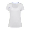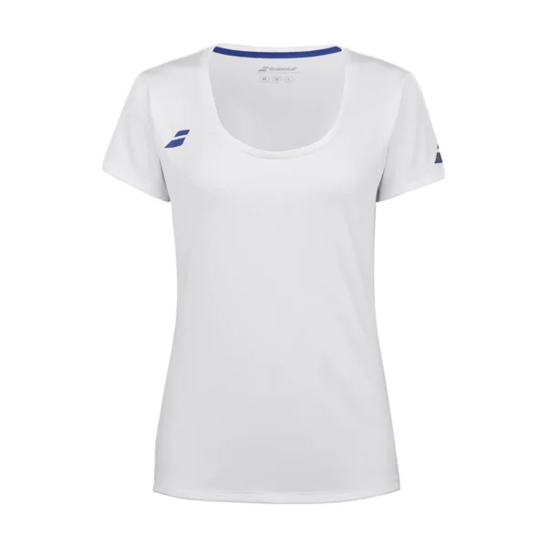 Su corte ergonómico y femenino proporciona total libertad de movimientos en brazos y hombros, ideal para ejecutar golpes precisos y potentes. El color blanco limpio aporta un toque versátil y elegante, mientras que el logotipo Babolat en el pecho completa el diseño con autenticidad y estilo.