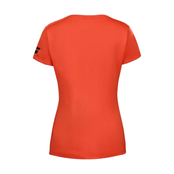 Su corte ergonómico y femenino permite movilidad total de brazos y hombros, favoreciendo golpes precisos y potentes. El color naranja vibrante aporta un toque moderno y llamativo, mientras que el logotipo Babolat en el pecho asegura un acabado deportivo y auténtico.