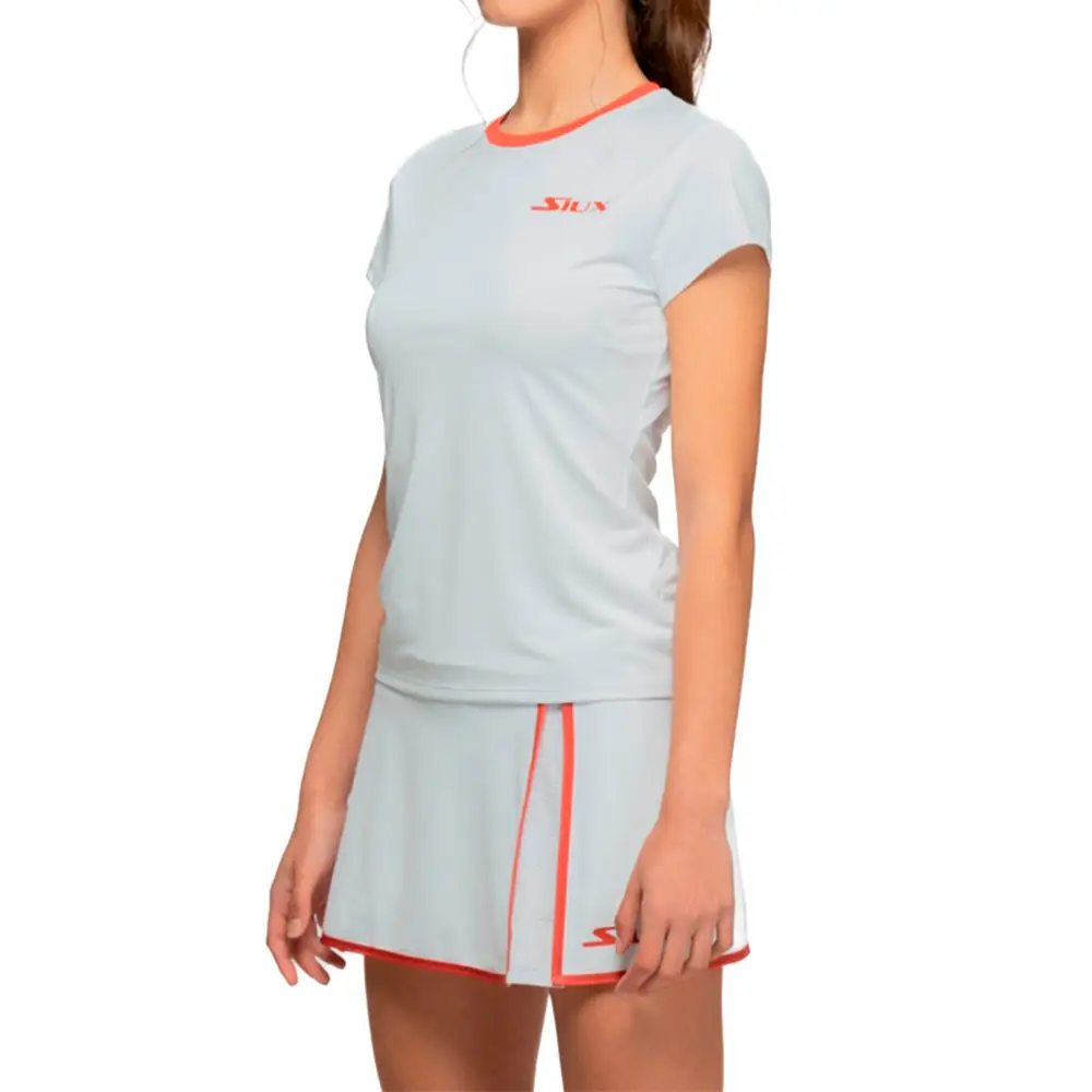 El corte femenino y ajustado se adapta al cuerpo, proporcionando comodidad y movilidad total en cada golpe. Su color blanco elegante, combinado con detalles modernos de diseño, aporta un toque sofisticado y deportivo, ideal para combinar con faldas, pantalones o shorts Siux.