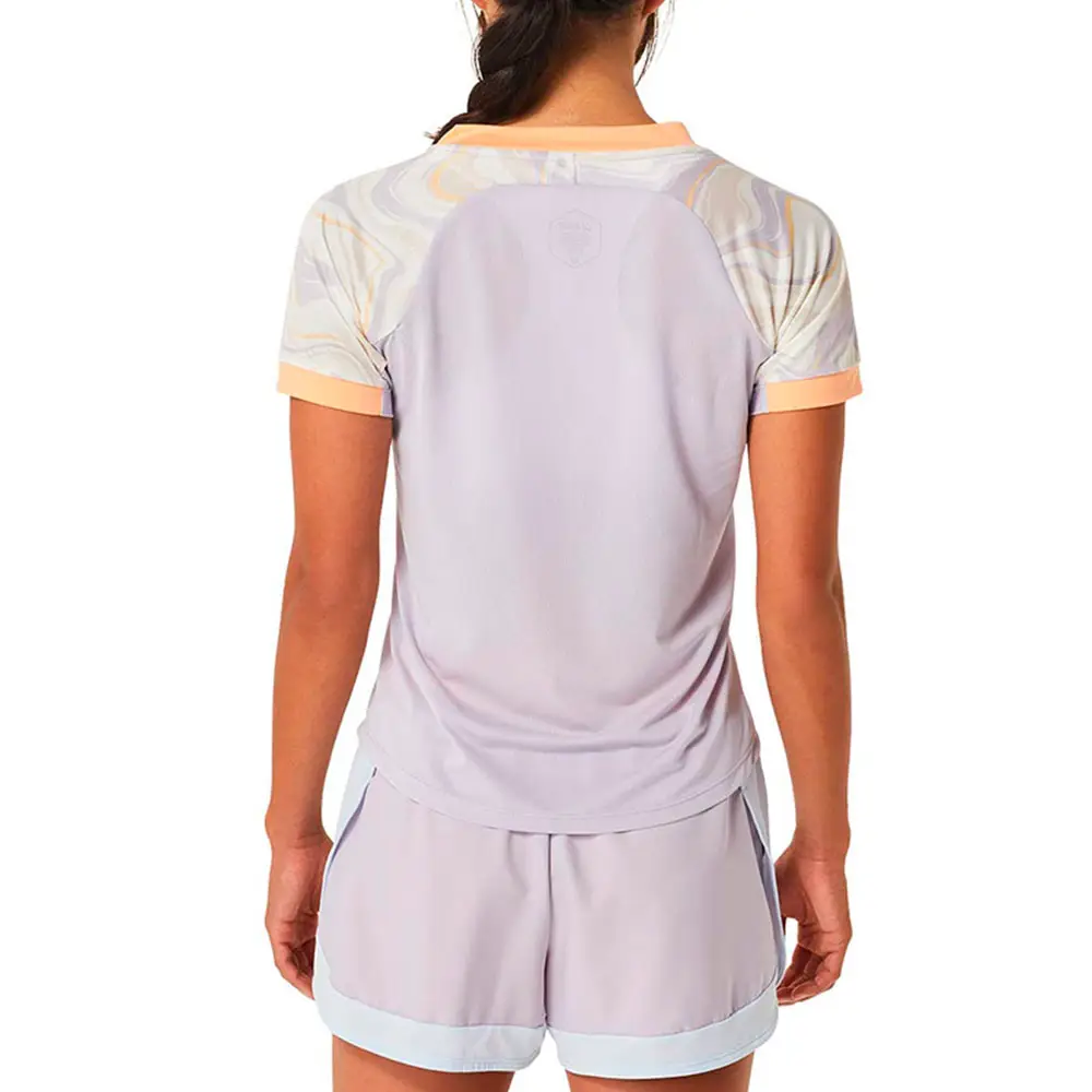El tejido técnico favorece la ventilación y la rápida evacuación del sudor, manteniendo la piel seca y confortable incluso durante entrenamientos intensos o partidos prolongados. Además, ofrece un ajuste femenino que se adapta a la anatomía de la jugadora, combinando comodidad con un look moderno y deportivo.