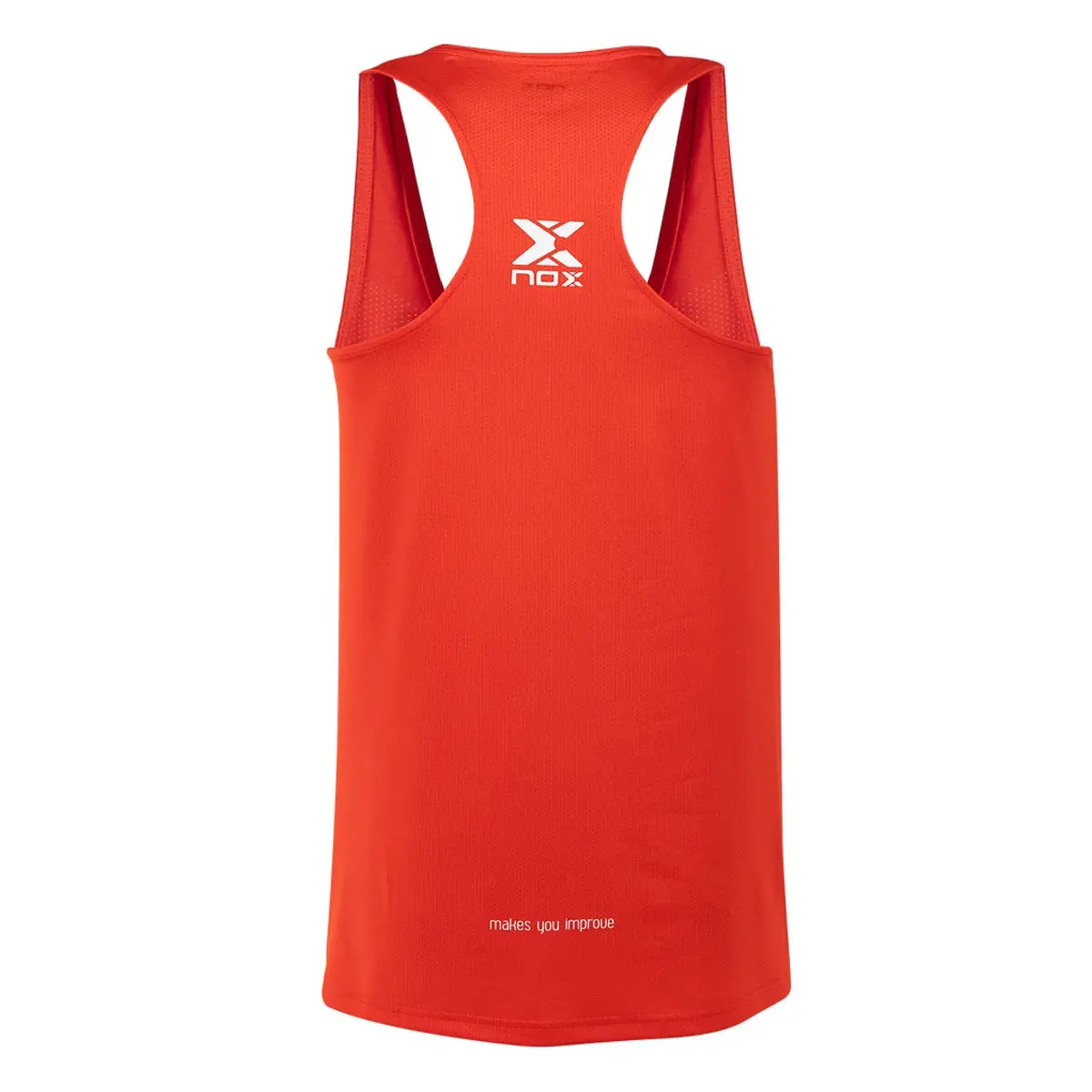 La Camiseta Tirantes Nox Microperforada Naranja ofrece transpirabilidad superior, ligereza y libertad de movimiento para jugadores de pádel. Confeccionada en tejido técnico microperforado de alto rendimiento, mantiene la piel fresca y seca durante entrenamientos y partidos. Disponible en MuchoPadelShop, combina diseño moderno y ajuste anatómico para un estilo profesional en la pista.