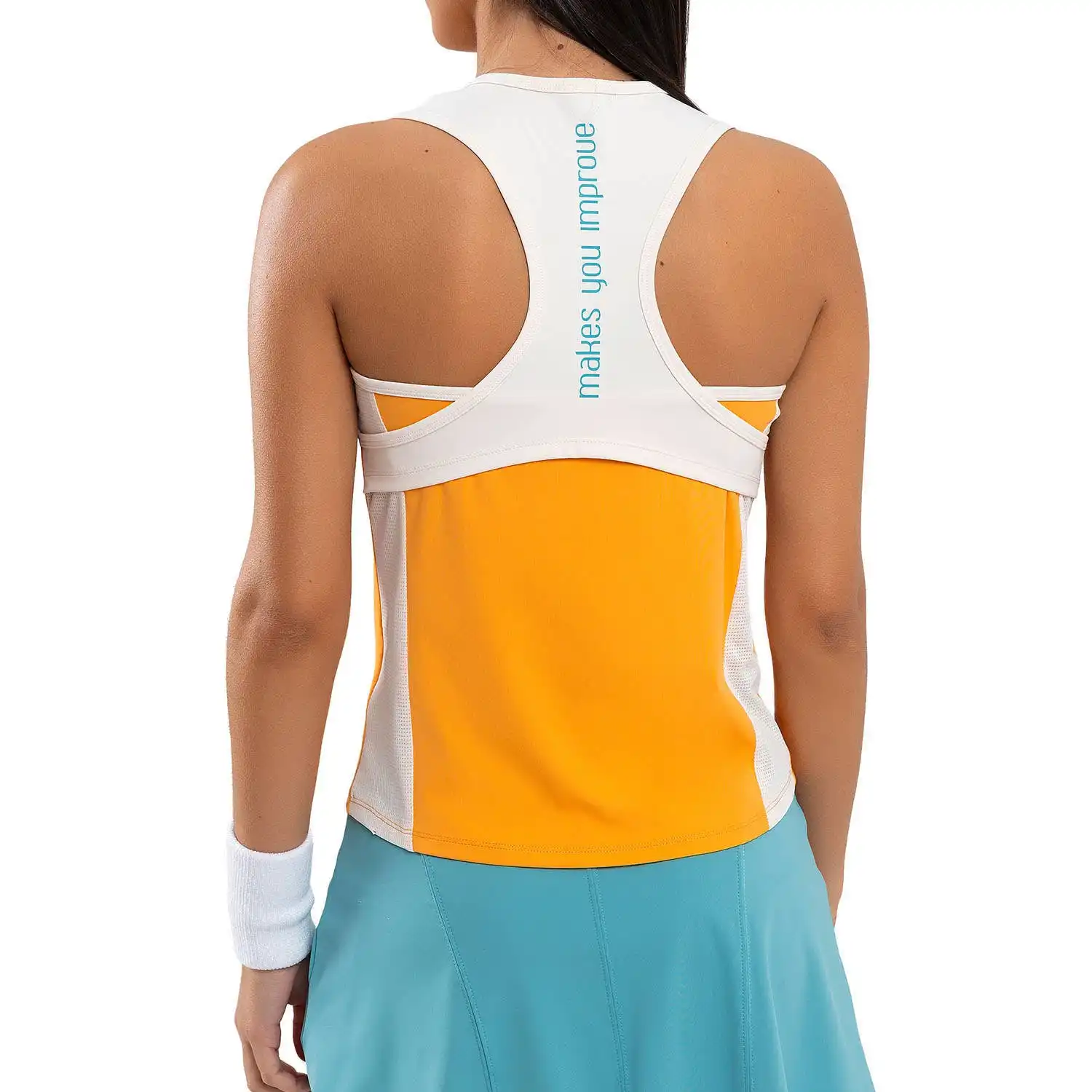 El diseño de tirantes ofrece libertad completa de hombros y brazos, garantizando comodidad y un ajuste natural sin limitar los movimientos en la pista. Su corte femenino ajustado asegura un look estilizado y cómodo, ideal para jugadoras que buscan rendimiento y estética en cada acción.