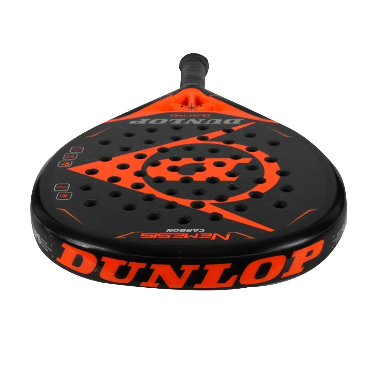 El diseño de la Dunlop Nemesis Carbon es moderno y agresivo, reflejando su carácter competitivo. Una pala ideal para jugadores avanzados y profesionales que buscan imponerse en la pista con un juego explosivo pero controlado.