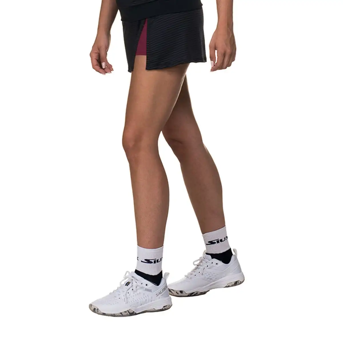 Su corte femenino y moderno se adapta al cuerpo de forma natural, mientras que su short interior incorporado ofrece seguridad y confort adicional en cada punto. El color rojo intenso aporta un toque enérgico y elegante, ideal para destacar dentro y fuera de la pista.