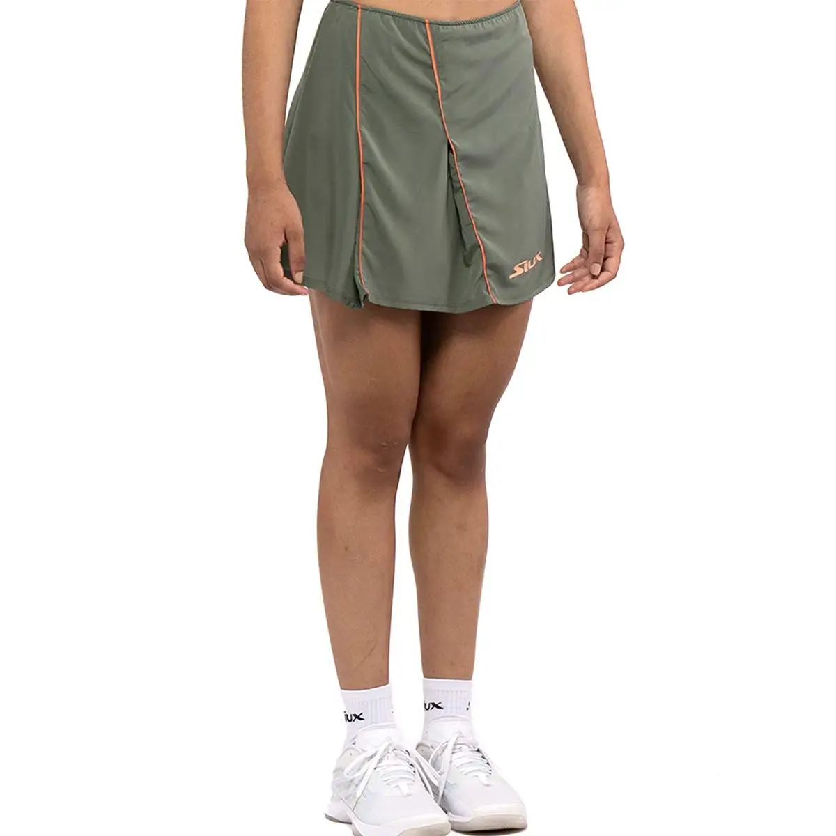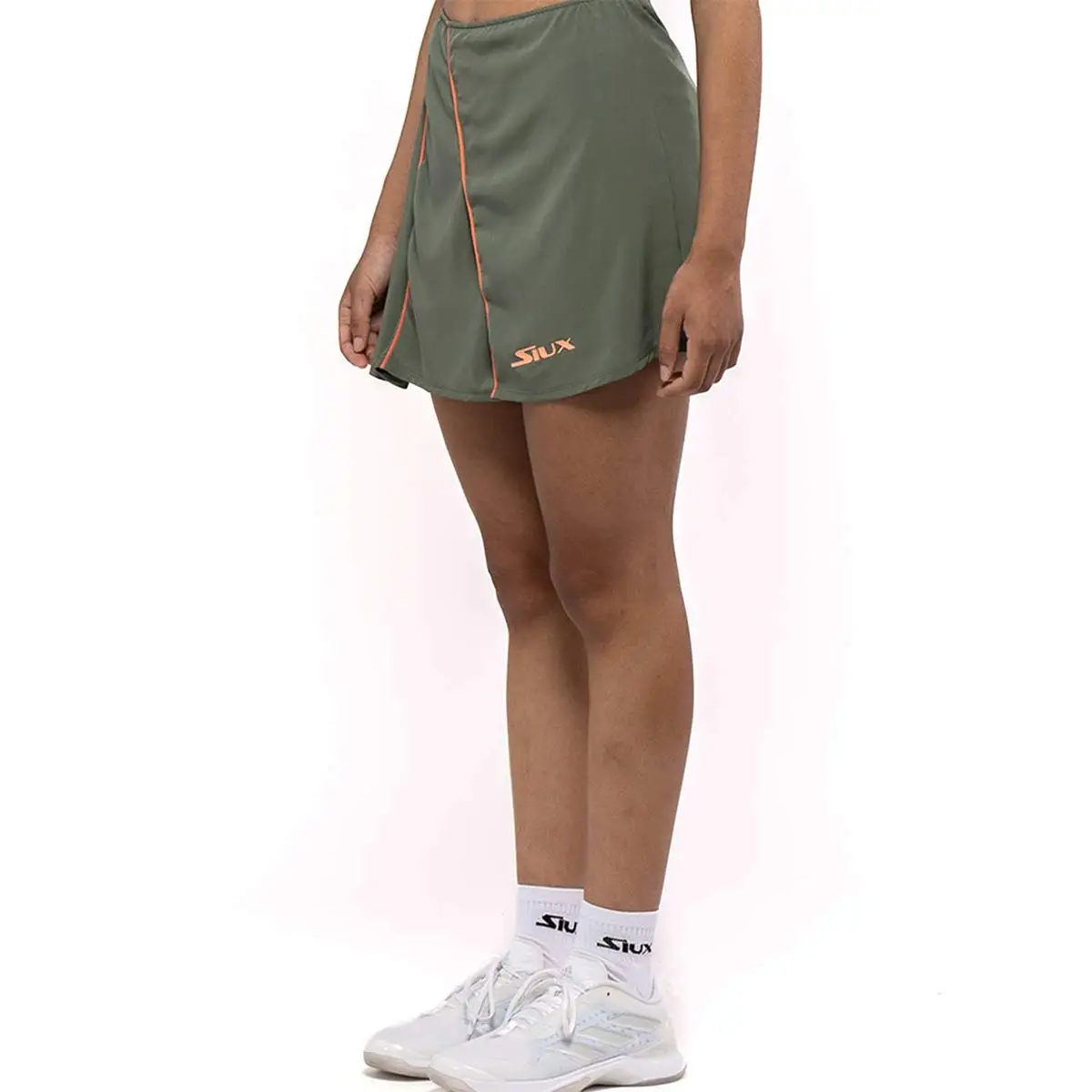 La falda Siux Mujer Desire Green es perfecta para jugadoras que buscan rendimiento, estilo y confort, garantizando frescura y libertad de movimiento en cada partido de pádel.
