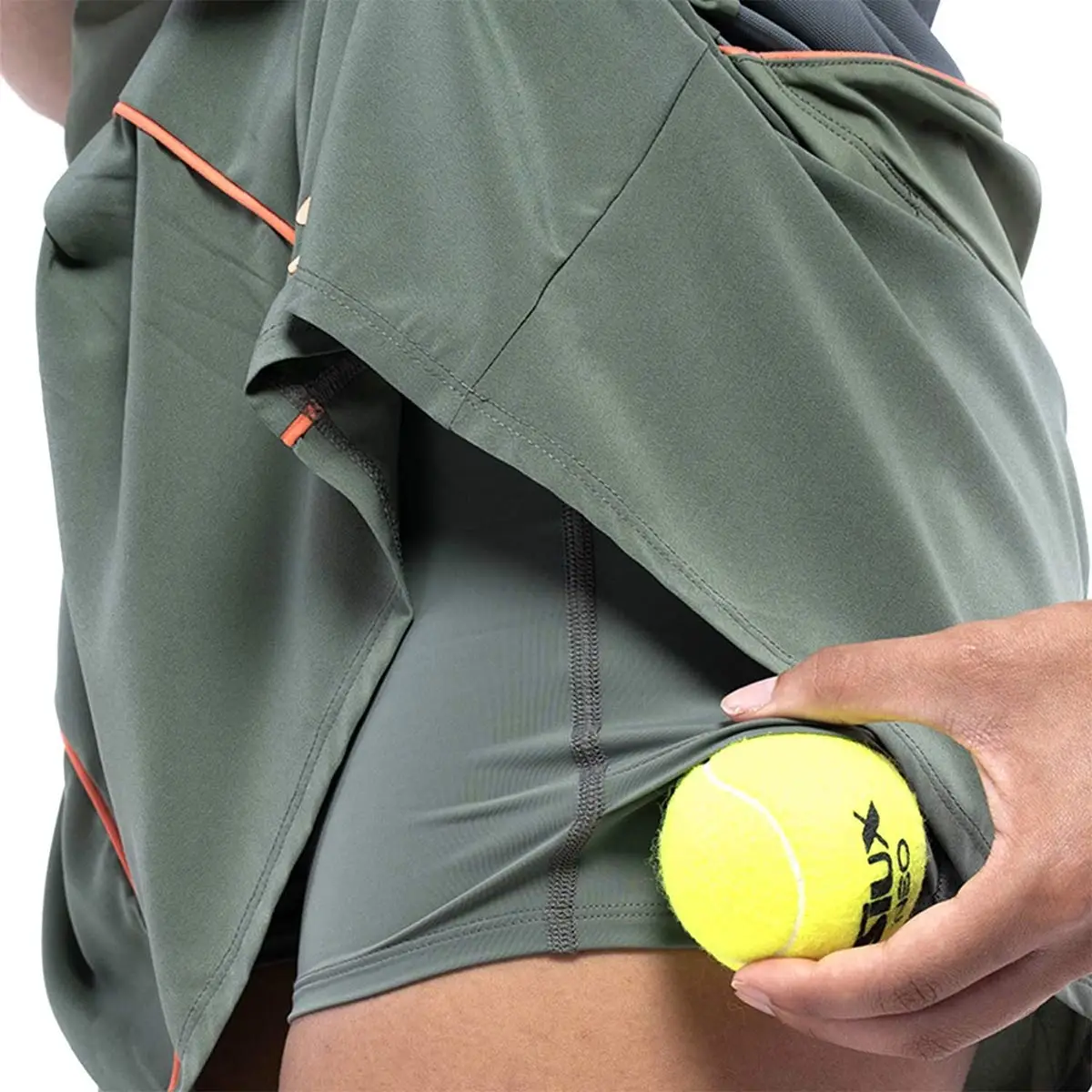 La falda Siux Mujer Desire Green combina comodidad, frescura y estilo deportivo, perfecta para jugadoras que buscan movilidad y rendimiento en la pista de pádel.