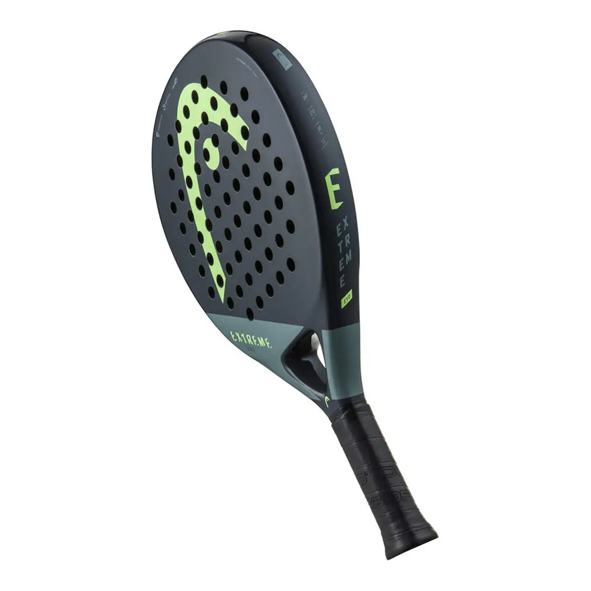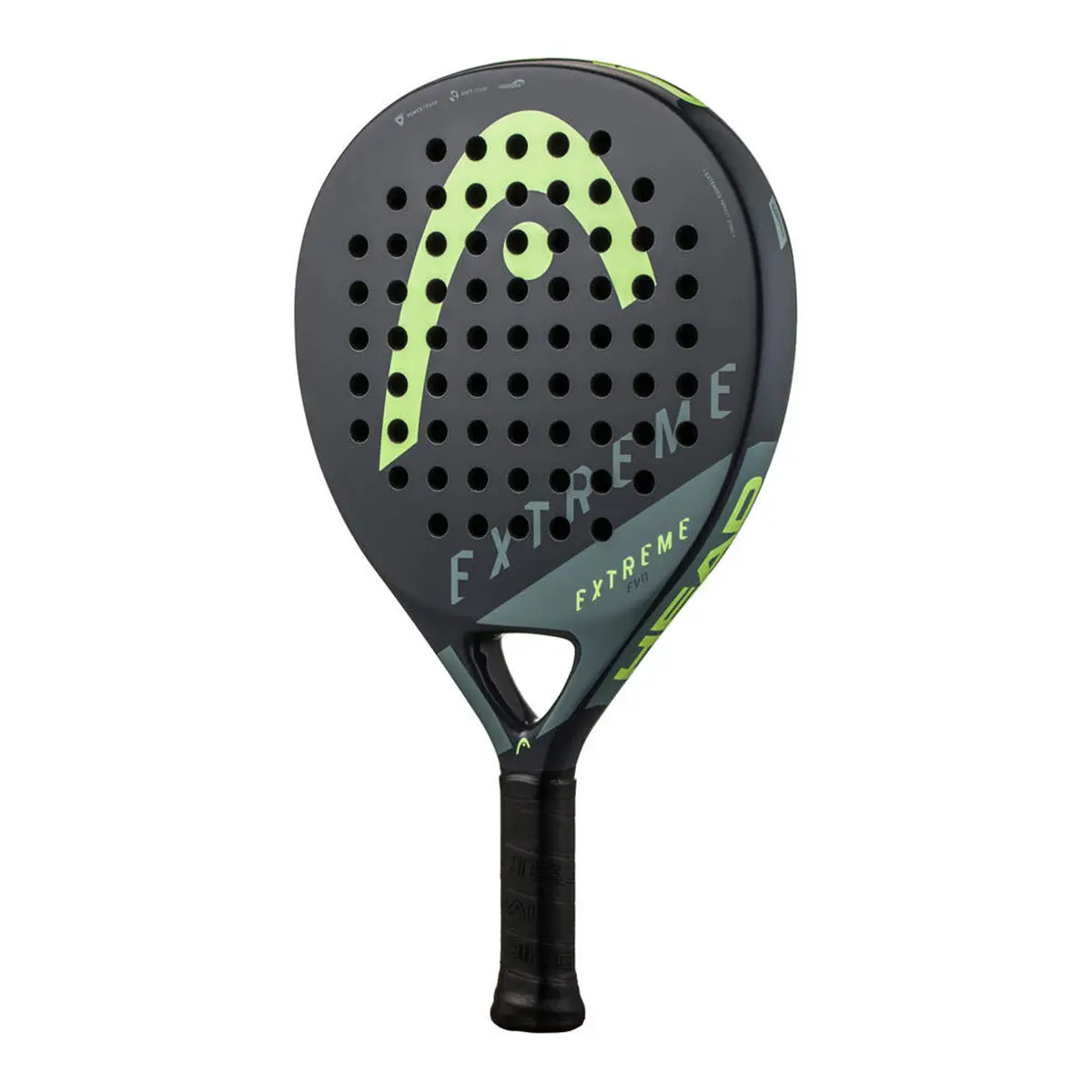 Head Evo Extreme 2023: pala de forma lágrima, ligera y con amplio punto dulce. Ideal para jugadores principiantes e intermedios que buscan confort, potencia y fácil maniobrabilidad. Equipado con núcleo Soft Foam, caras de fibra de vidrio e Innegra para mayor potencia y menor vibración.
