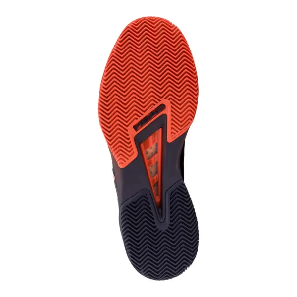 La suela clay, diseñada con un patrón en espiga, asegura un agarre sobresaliente en pistas de tierra batida y césped artificial, ofreciendo la tracción necesaria en cada punto. Su diseño en azul oscuro con detalles contrastados aporta un estilo sofisticado y deportivo que marca presencia en la pista.