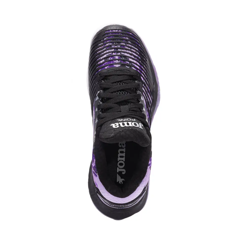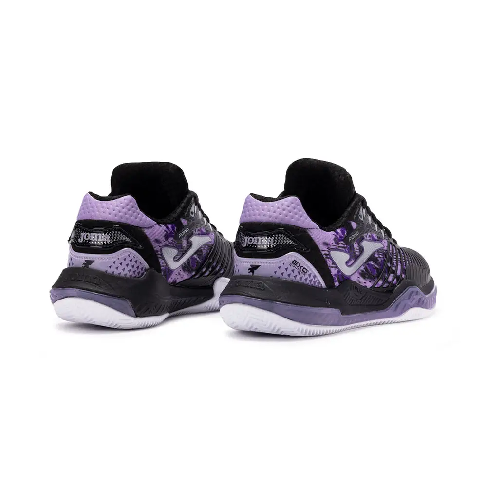 Las JOMA POINT LADY 25 NEGRO/LILA MUJER TPOILW2501C han sido desarrolladas para jugadoras de pádel que necesitan una zapatilla sólida y cómoda capaz de responder a las exigencias del juego actual, donde los desplazamientos laterales, las frenadas y los cambios de ritmo forman parte constante de cada punto.