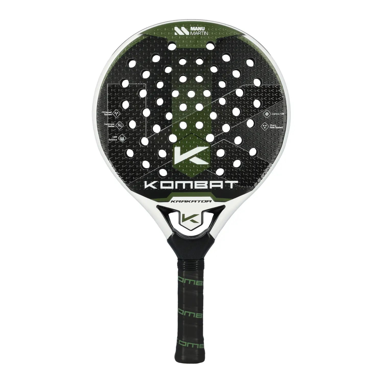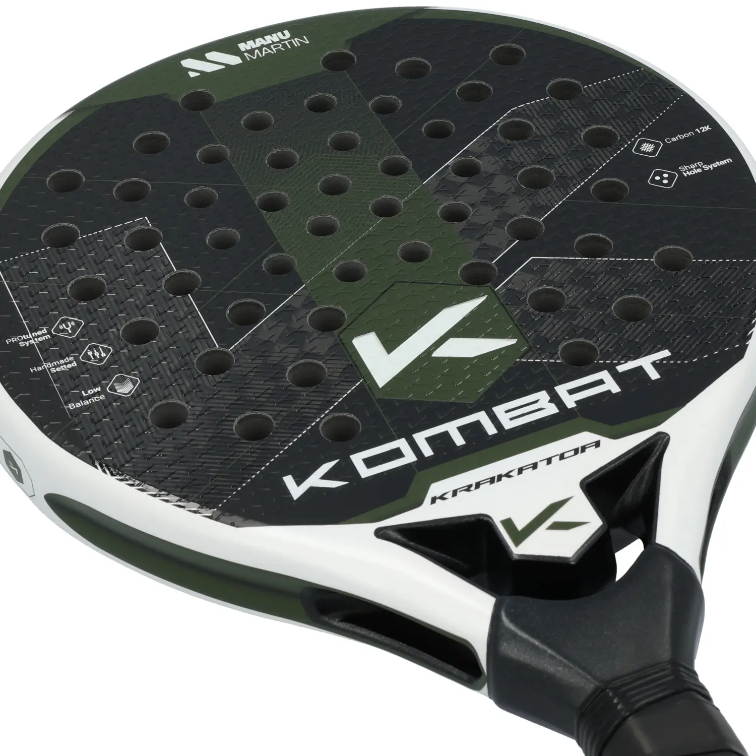 Kombat Krakatoa 2025: pala de potencia con forma diamante y balance alto, ideal para jugadores ofensivos que buscan golpes explosivos. Fabricada en carbono 12K, con núcleo de goma EVA de alta densidad y superficie rugosa para un máximo efecto.