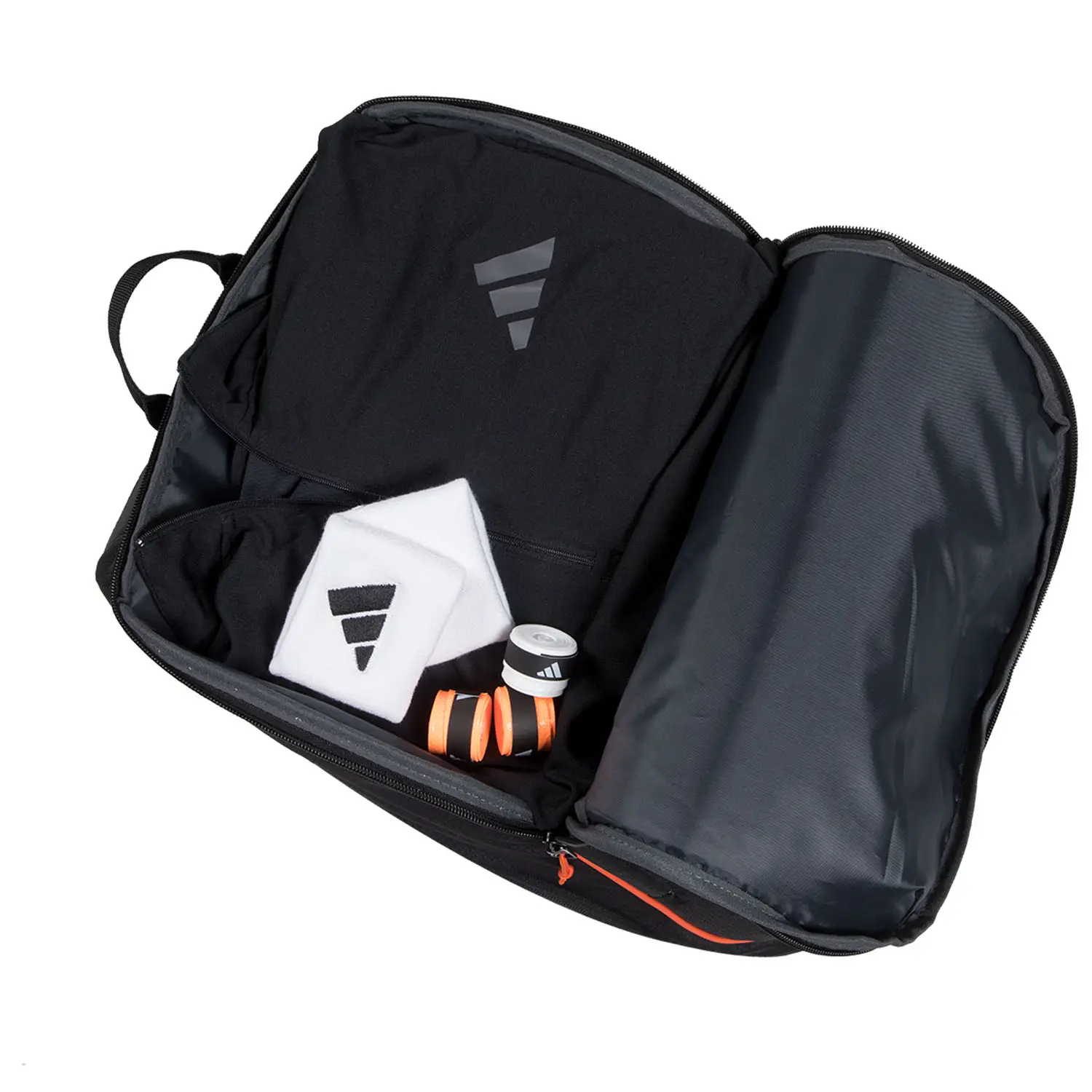 El diseño ergonómico de la Adidas Protour 3.3 Black incluye correas acolchadas ajustables que proporcionan un confort excepcional incluso en desplazamientos prolongados. La ventilación estratégica en los compartimentos ayuda a mantener tu equipo seco y libre de malos olores, ofreciendo una experiencia de transporte cómoda e higiénica.