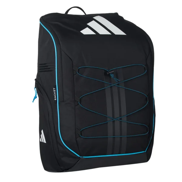 Para una organización más eficiente, la Adidas Protour Black 3.4 2025 incluye varios bolsillos adicionales estratégicamente ubicados. Destaca un bolsillo lateral térmico, diseñado para proteger tu pala de las variaciones de temperatura, y bolsillos exteriores ideales para almacenar objetos pequeños como overgrips, llaves, cartera o dispositivos electrónicos, manteniéndolos siempre accesibles.