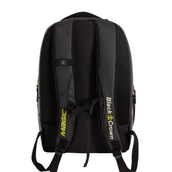 La Mochila Black Crown Magic Negro/Amarillo combina practicidad, comodidad y un diseño deportivo ideal para jugadores de pádel que buscan un transporte ligero y organizado. Con espacio para tu pala, compartimentos adicionales y un ajuste ergonómico, es perfecta para el día a día. Encuéntrala en Muchopadelshop, la tienda líder en productos de pádel de alta calidad.