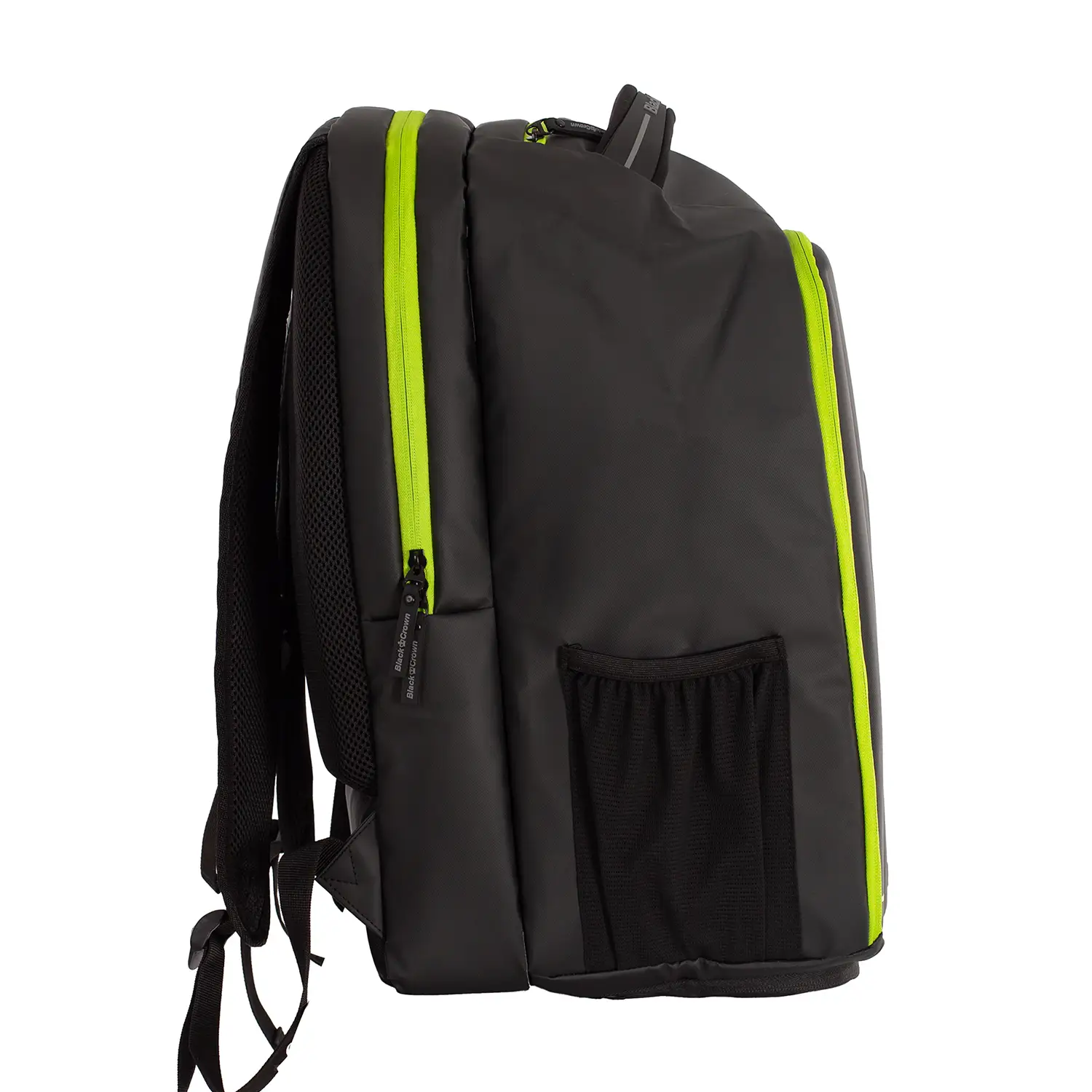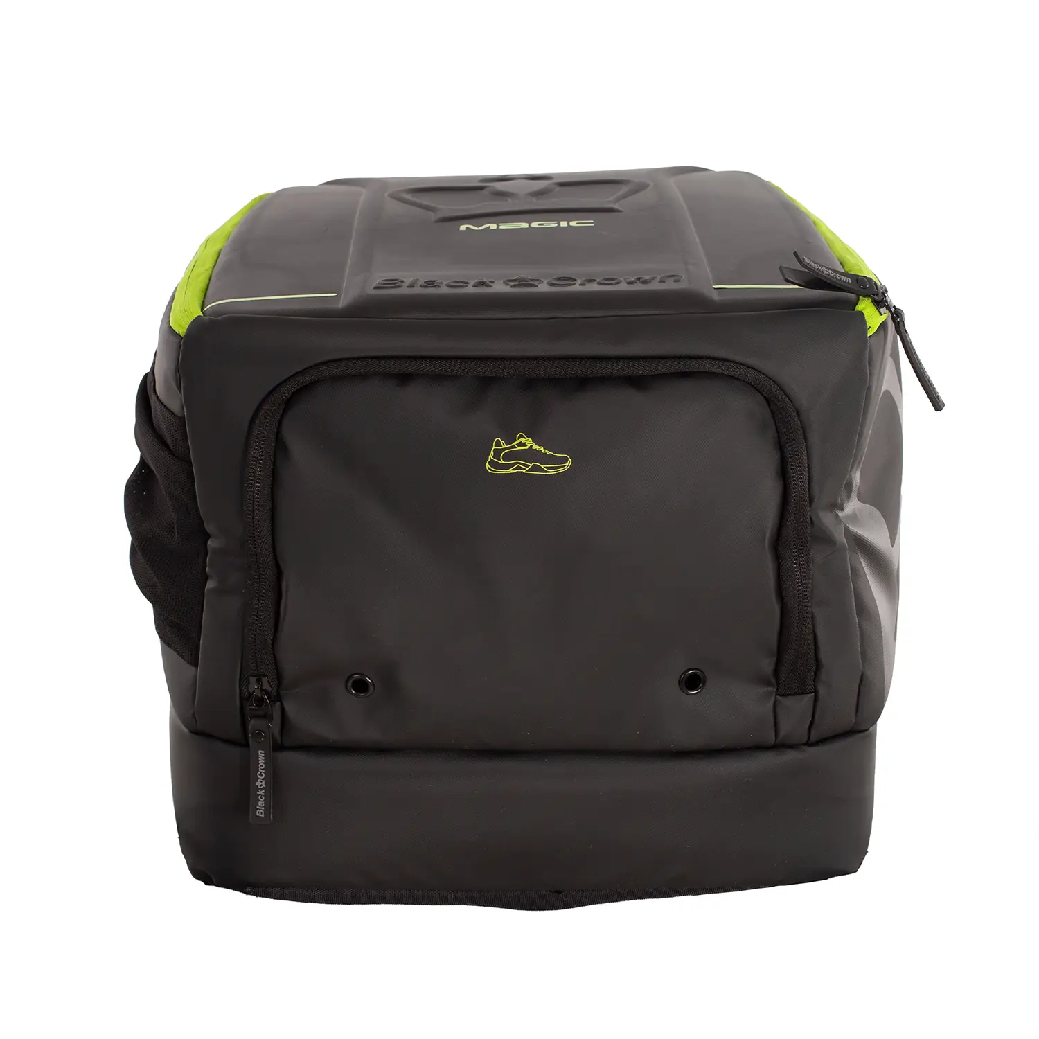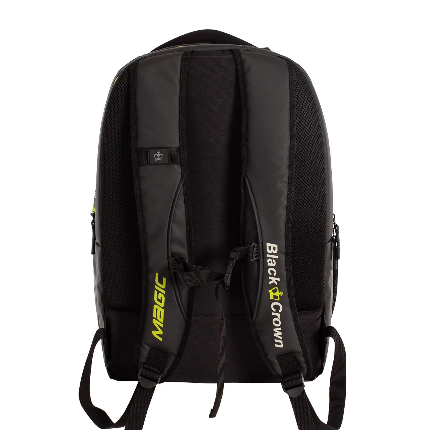 La Mochila Black Crown Magic Negro/Amarillo, disponible en Muchopadelshop, es una opción versátil y funcional diseñada para jugadores que necesitan una solución ligera y eficiente para transportar su equipo de pádel. Con un estilo moderno que combina el negro sobrio con detalles en amarillo vibrante, esta mochila destaca por su equilibrio entre diseño, durabilidad y confort.