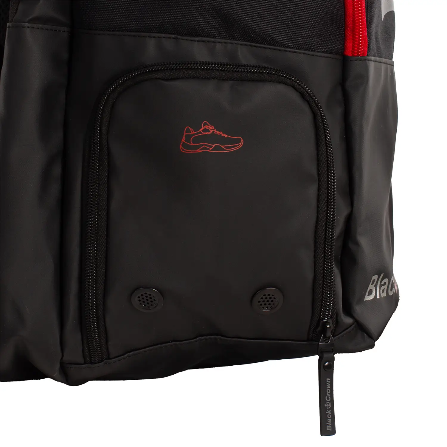 La Mochila Black Crown Raptor Roja A003737, disponible en Muchopadelshop, está diseñada para jugadores que buscan un equilibrio perfecto entre practicidad, resistencia y estilo. Con un elegante acabado en rojo vibrante y detalles en contraste, esta mochila no solo destaca por su estética moderna, sino también por su capacidad y organización optimizada para el día a día en la pista.