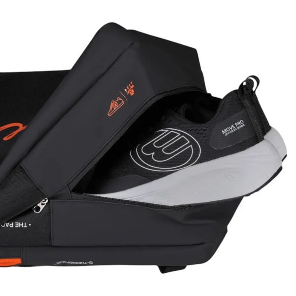 Cuenta con un compartimento principal amplio para ropa, toallas y accesorios, junto con un compartimento independiente para la pala, que protege frente a golpes y rozaduras. Además, incorpora bolsillos auxiliares con cremallera para objetos personales y un compartimento ventilado para calzado o ropa usada, manteniendo todo organizado y fresco.