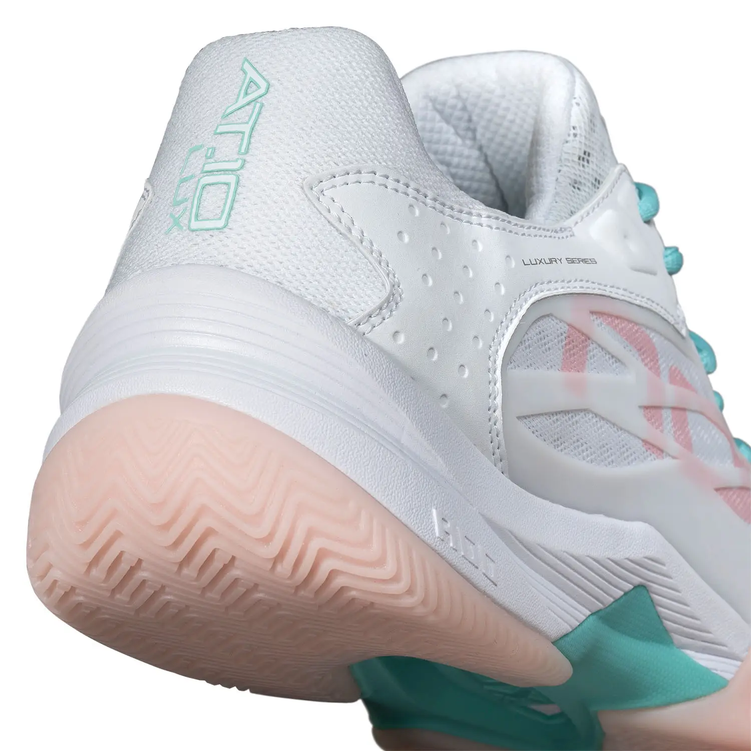 Nox AT10 Lux Blanco Mujer: zapatillas oficiales de Agustín Tapia adaptadas a la horma femenina. Máxima estabilidad, amortiguación y agarre con un diseño elegante y cómodo.