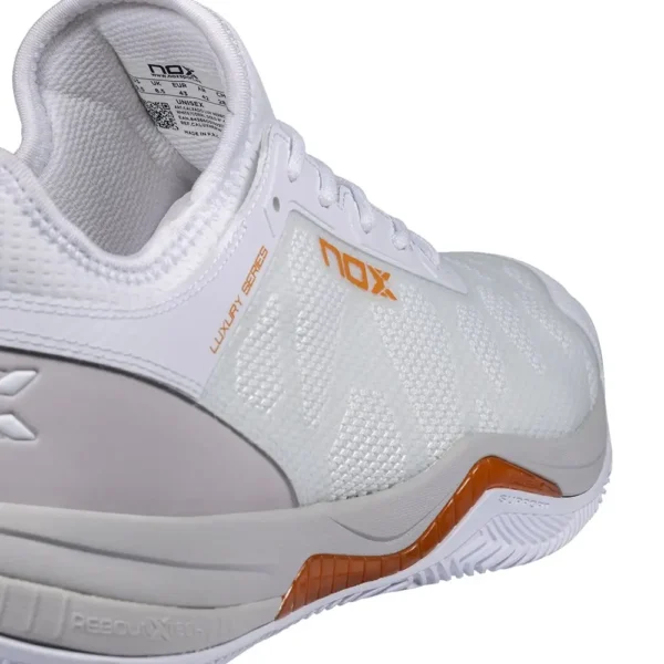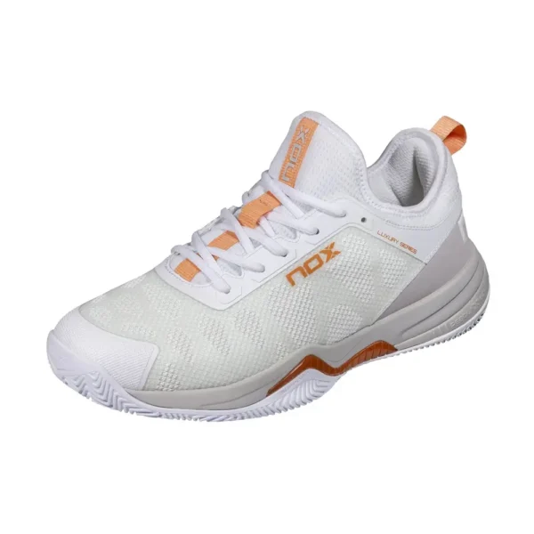 Nox Lux Nerbo Blanco Coral: zapatillas de pádel técnicas con gran agarre, estabilidad y amortiguación. Diseñadas para jugadores exigentes que buscan máximo rendimiento y confort en la pista.