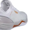 La entresuela con amortiguación de alto rendimiento asegura una gran absorción de impactos, reduciendo la fatiga y protegiendo las articulaciones. Por otro lado, la suela híbrida en espiga y tacos proporciona un agarre excepcional y tracción multidireccional, perfecta para los movimientos explosivos propios del pádel.