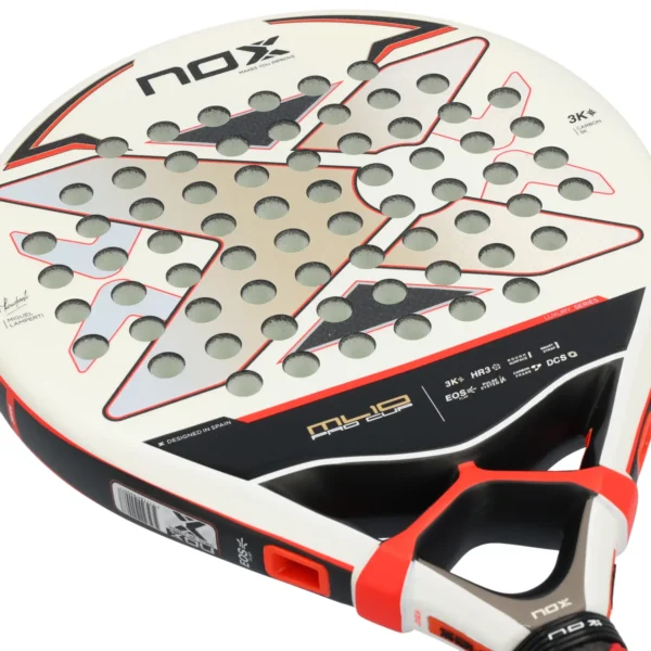 La NOX ML10 Pro Cup 3K Luxury Series 2024 ofrece una combinación única de tecnología de vanguardia y materiales de alta calidad. Su construcción en carbono 3K proporciona una resistencia excepcional y una respuesta potente en cada golpe. Además, su formato redondo y balance medio favorecen un control preciso y una manejabilidad óptima en la pista.