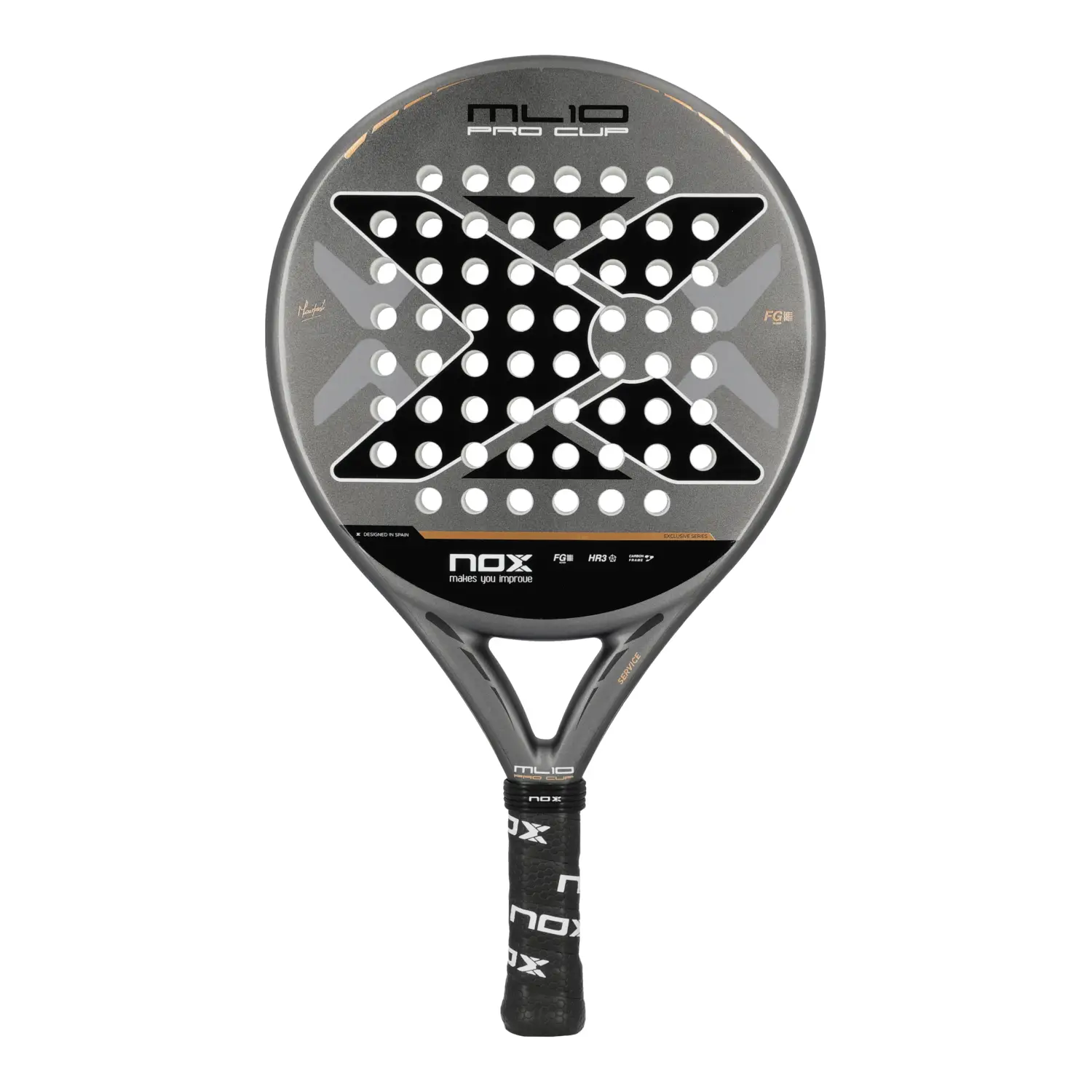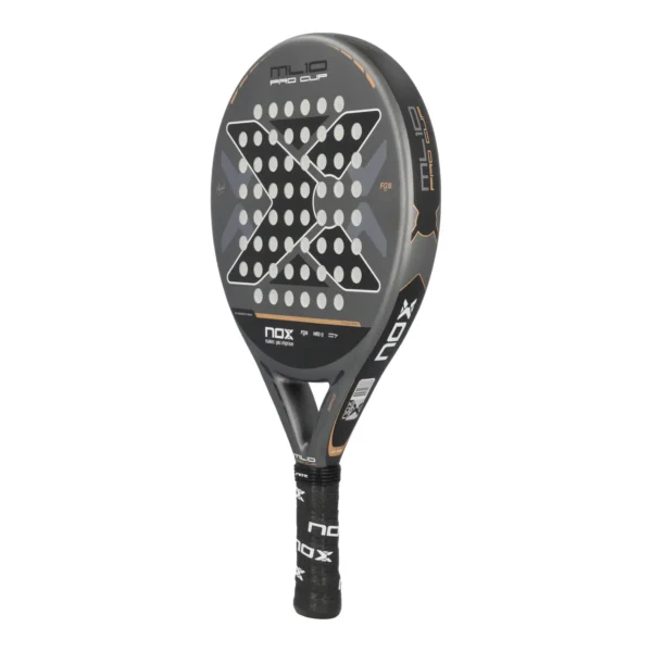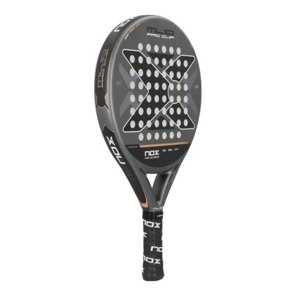 Nox ML10 Pro Cup Coorp by Miguel Lamperti: pala redonda de control con gran punto dulce, fabricada en fibra de vidrio y núcleo HR3 para una salida de bola excepcional y tacto cómodo. Ideal para jugadores que buscan precisión y polivalencia.