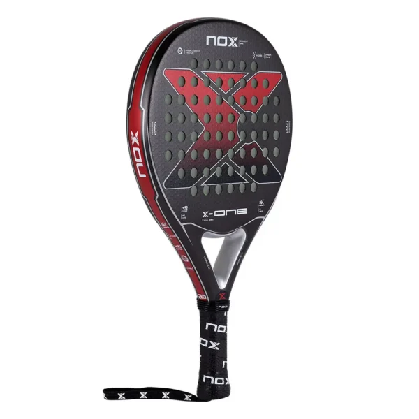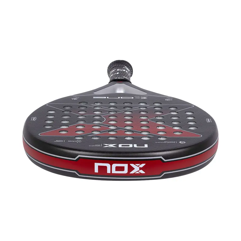 Equipada con las últimas innovaciones tecnológicas, la NOX X-ONE EVO RED ofrece un rendimiento óptimo en cada golpe. Su estructura de carbono proporciona una resistencia excepcional sin comprometer la ligereza, permitiendo una maniobrabilidad ágil y precisa en la pista. La disposición estratégica de sus materiales y la distribución del peso garantizan un equilibrio perfecto entre potencia y control, permitiendo al jugador desplegar su juego con confianza y eficacia.