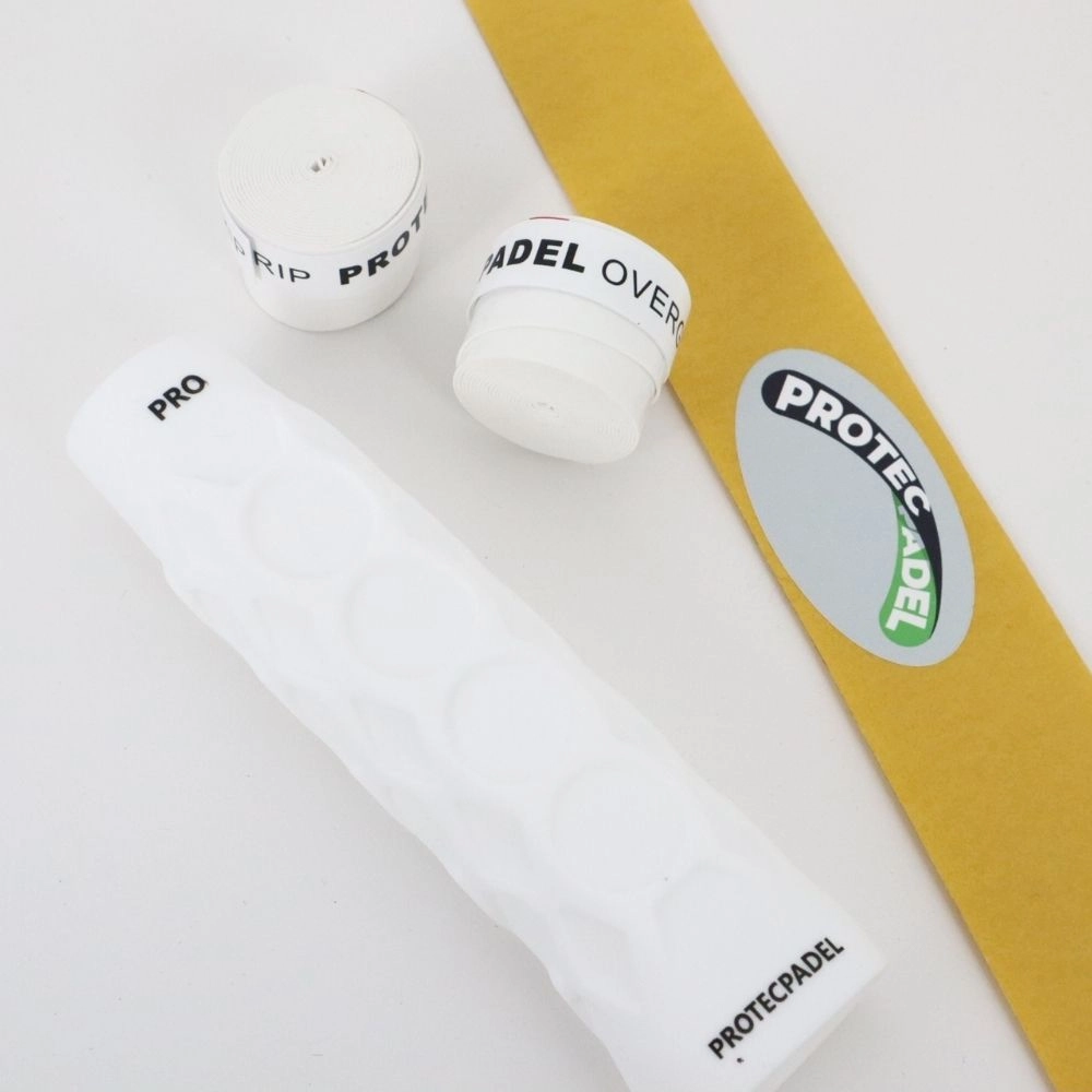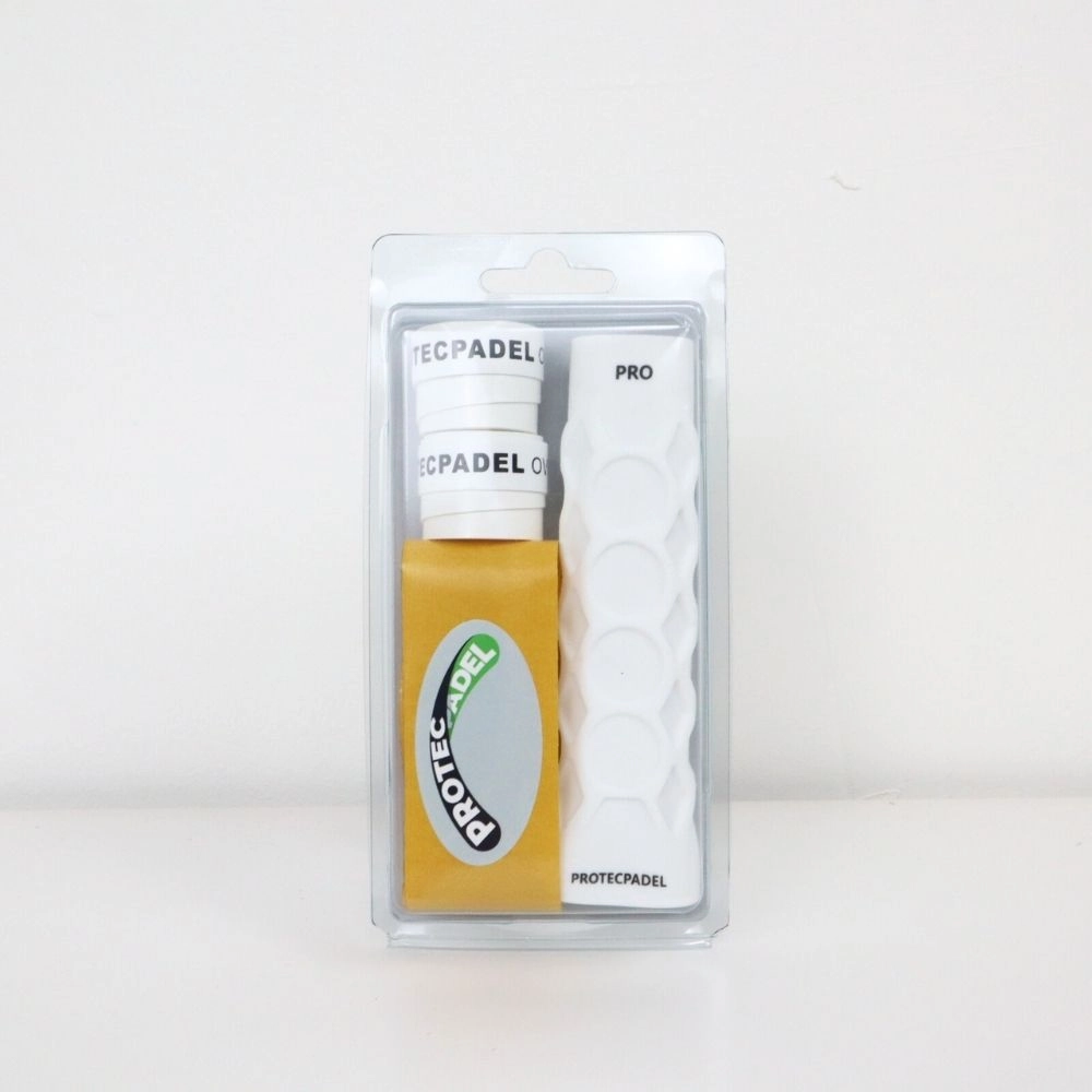 El pack premium de accesorios PROTECPADEL incluye todo lo necesario para mejorar tu rendimiento y comodidad en la pista: un antivibrador ErgoPro, dos overgrips de alta calidad y un protector transparente para tu pala. ¡Todo lo que necesitas para jugar con más control y confort!