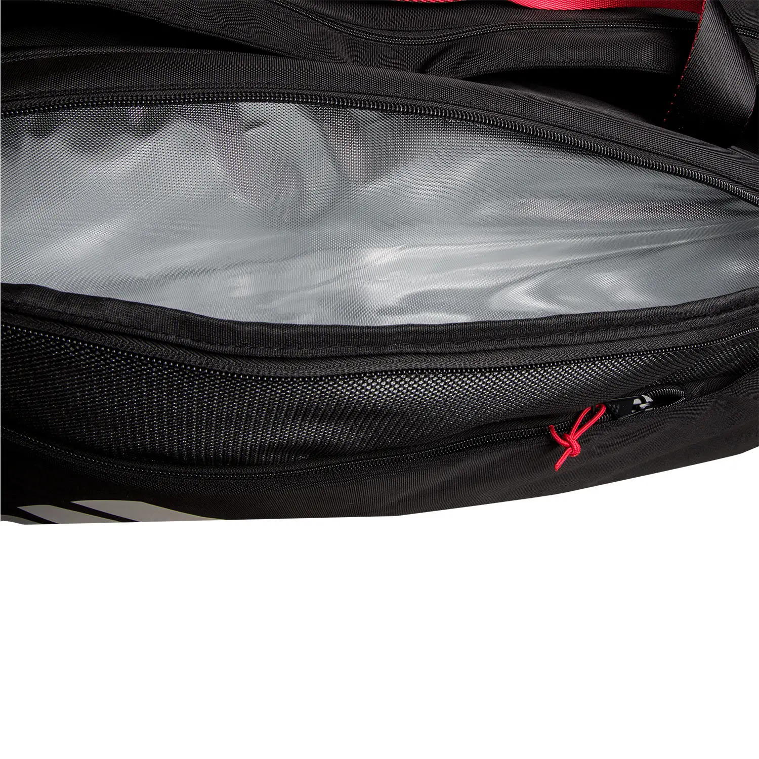 El Paletero Adidas Multigame Negro/Rojo 3.4 AB1PA0U22, disponible en Muchopadelshop, combina un diseño audaz con la máxima funcionalidad. Con compartimentos térmicos para proteger tus palas, un área ventilada para calzado y amplios espacios de almacenamiento, este paletero es ideal para jugadores que buscan transportar su equipo con seguridad y estilo. Su estructura ergonómica y materiales de alta calidad garantizan comodidad y durabilidad en cada desplazamiento.