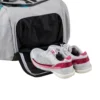 Su amplia capacidad incluye un espacio principal de gran volumen, ideal para llevar ropa, accesorios y otros elementos esenciales. Además, dispone de un bolsillo ventilado diseñado para almacenar calzado o ropa húmeda, manteniendo el resto del contenido limpio y fresco.