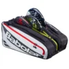 El Paletero Babolat RH Pro Padel Negro 759020 2025 es la elección perfecta para jugadores de pádel que buscan combinar estilo, funcionalidad y sostenibilidad. Con una capacidad de 62 litros y espacio para hasta 4 palas, este paletero ofrece múltiples compartimentos, incluyendo uno térmico para proteger tus palas y un bolsillo ventilado para el calzado. Fabricado con materiales reciclados de alta calidad, garantiza durabilidad y respeto por el medio ambiente. Disponible en Muchopadelshop, tu tienda especializada en productos de pádel de alta gama.