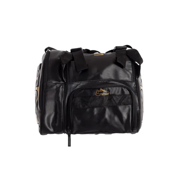 Fabricado con materiales de alta resistencia, este paletero está preparado para soportar el uso intensivo y el desgaste propio de los entrenamientos y competiciones. La combinación de negro sobrio con detalles en dorado metálico no solo aporta una estética sofisticada, sino que refleja el espíritu competitivo y la búsqueda de la excelencia en el pádel.