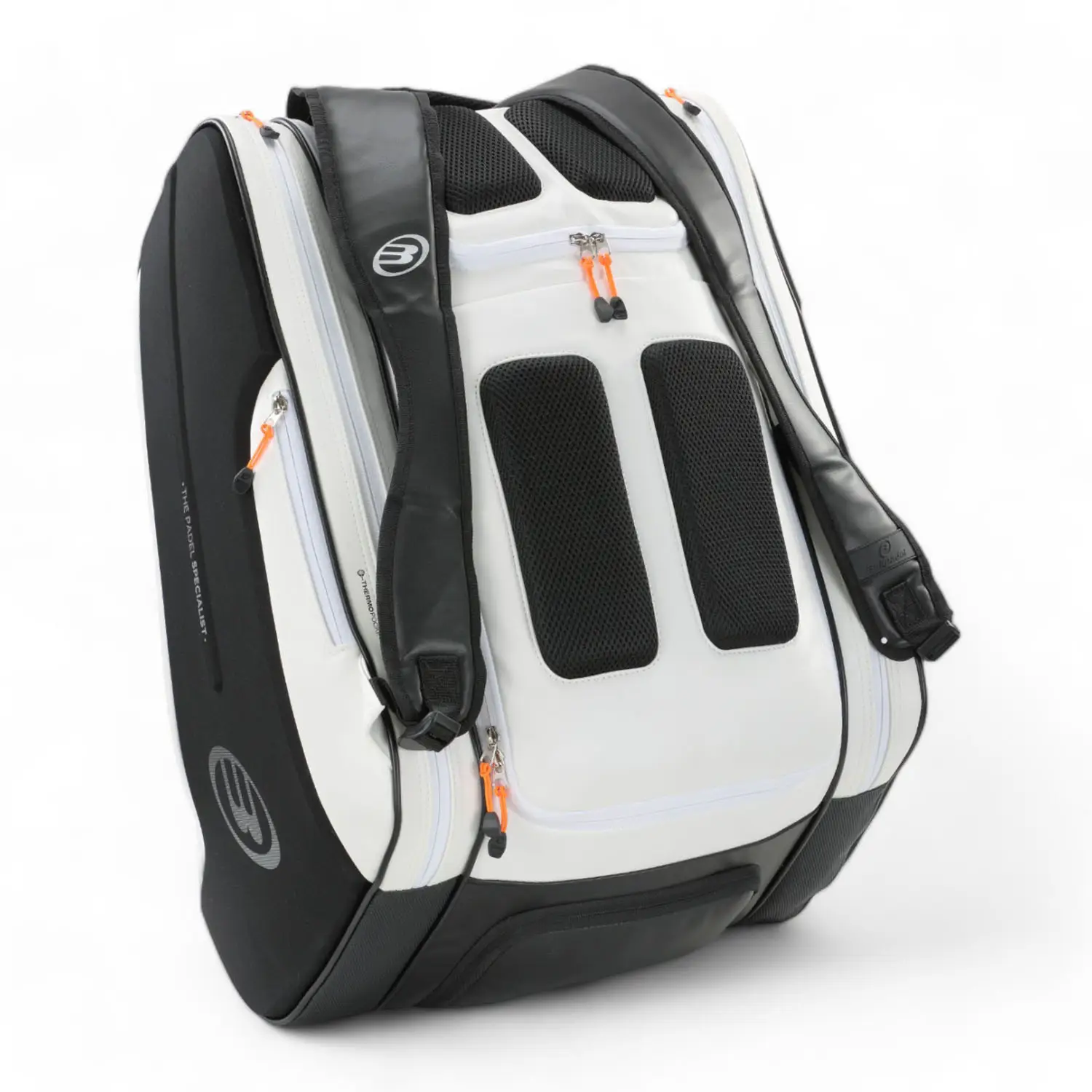 Cuenta con un compartimento principal amplio para ropa, toallas y accesorios, además de un bolsillo termo independiente con tecnología ThermoTech, que protege las palas frente a cambios de temperatura y mantiene su rendimiento óptimo. También incluye compartimentos ventilados para calzado o ropa usada y bolsillos adicionales con cremallera para objetos personales, asegurando organización y frescura.