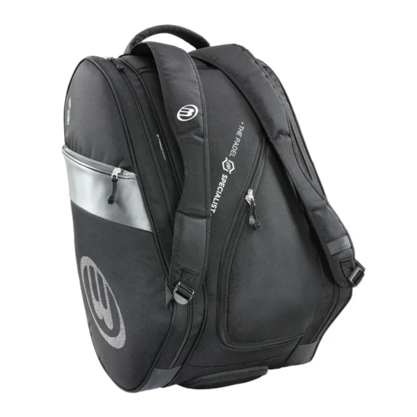 Dispone de un compartimento principal espacioso para ropa y accesorios, así como un compartimento específico para la pala, protegido para evitar roces y golpes. Además, integra bolsillos laterales con cremallera para objetos personales y un compartimento independiente para calzado, ventilado para mantener frescura e higiene.